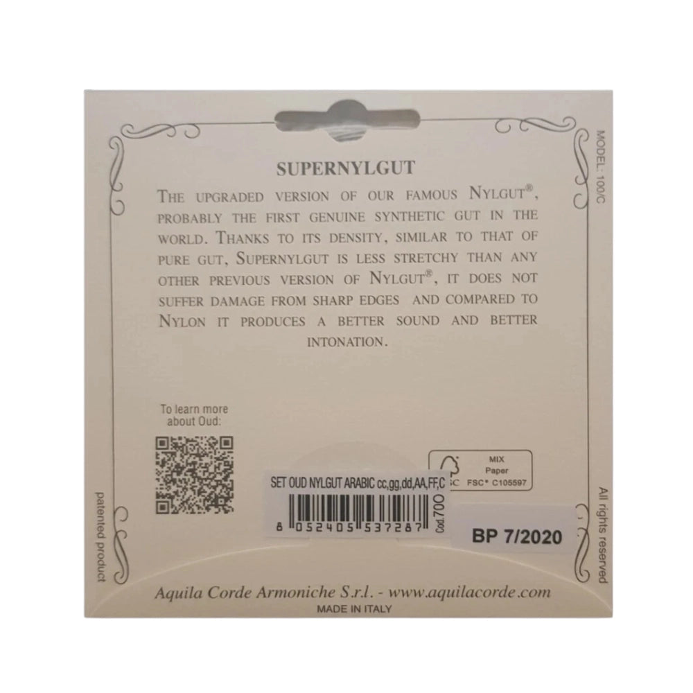 Aquila SuperNylgut Oud Strings deliver professional-grade performance with precisely calibrated 3.4 kg tension per string. This revitalized traditional set features Super Nylgut trebles complemented by silver-plated copper wire basses, with the distinctive third strings crafted from specialized gray metal alloy. Designed specifically for ARABIC oud in CC,GG,DD,AA,FF,C tuning, these premium white strings provide authentic tonal characteristics demanded by discerning oud performers.