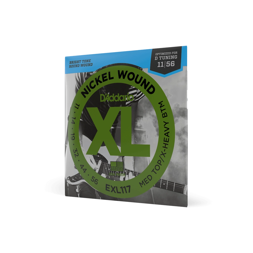 XL Nickel Wound electric guitar strings are the standard against which all other strings are measured. Our best-selling electric set, XL Nickel has been revered by players everywhere since 1974. Made with a high carbon steel core and nickel-plated steel wrap wire, XL Nickel strings have a bright, versatile tone, ideal for a wide variety of musical styles. This 11-56 Medium Top/Extra Heavy Bottom set is designed to maintain a comfortable playing tension when tuning down a whole step to D.