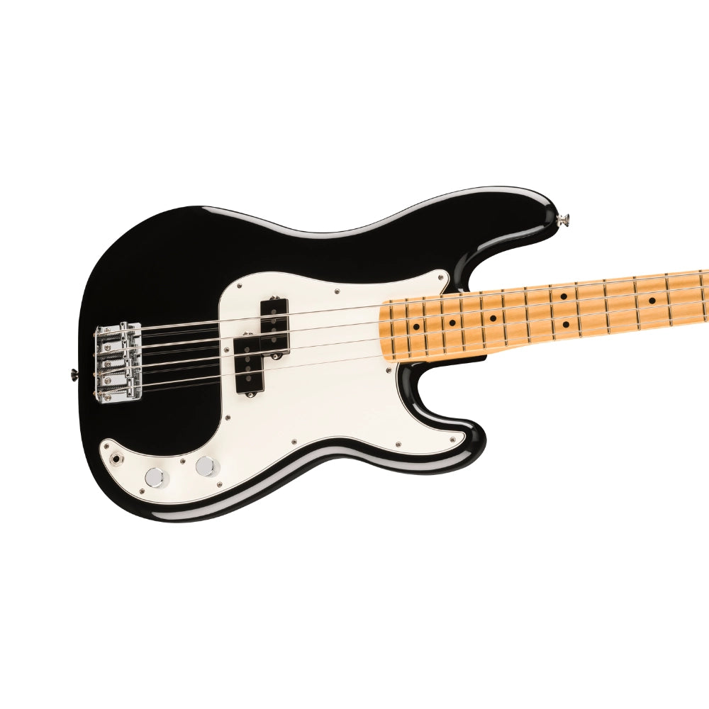 The Player II Precision Bass radiates timeless Fender charm, but under the hood, it's primed for today's players. Everything about the neck is designed for fast and fluid playability, from the Modern “C”-profile with silky satin urethane finish on the back to the comfy 9.5”-radius slab rosewood or maple fingerboard with smooth rolled edges and 20 medium jumbo frets. A classic alder body is available in both timeless Fender finishes and never-before-seen colors unearthed from the archives. Player Series Alnico V Split-Coil P bass® pickups offer sweet highs, musical mids and seismic lows that elevate any genre. An adjustable 4-saddle bridge, single-groove steel saddles and open-gear tuners ensure precise tuning stability for the flexibility to explore endless sonic possibilities.
