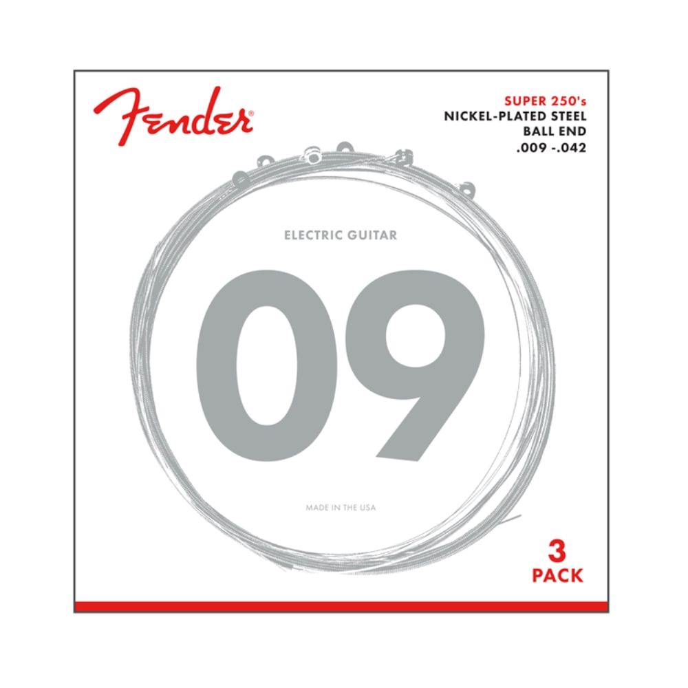 Fender 0730250309 Super 250L NPS Ball End Strings (.009-.042 Gauges) 3-Pack