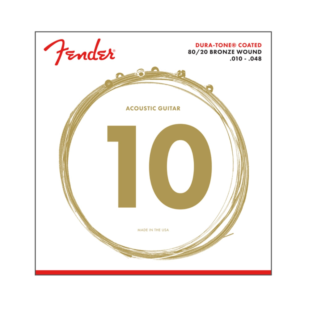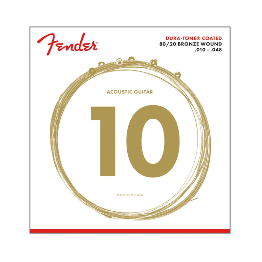-Fender's Dura-Tone coating adds resilience and longevity with a layer of coating bonded to a 80/20 bronze wound (80% copper and 20% zinc) wrap wire