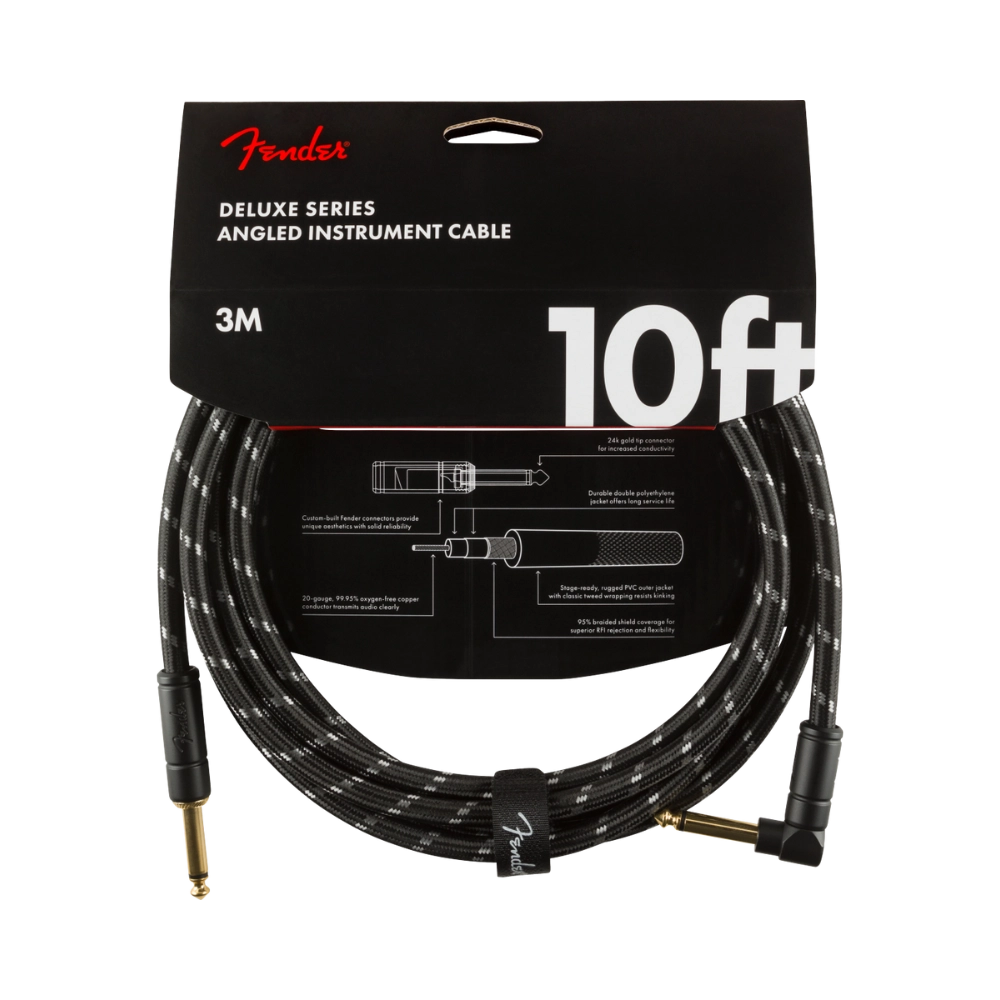 Fender 0990820090 Deluxe Series Instrument Cable, Straight/Angle, 10', Black Tweed