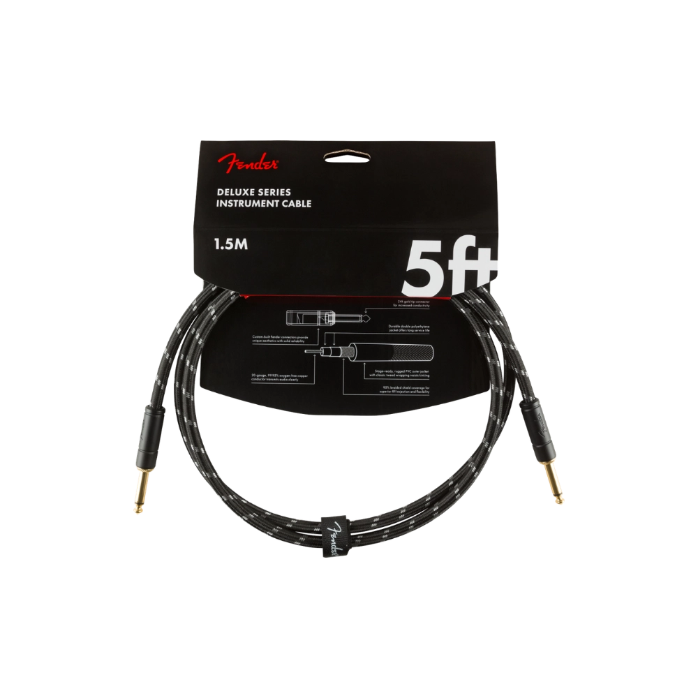 Fender 0990820093 Deluxe Series Instruments Cable, Straight/Straight, 5', Black Tweed