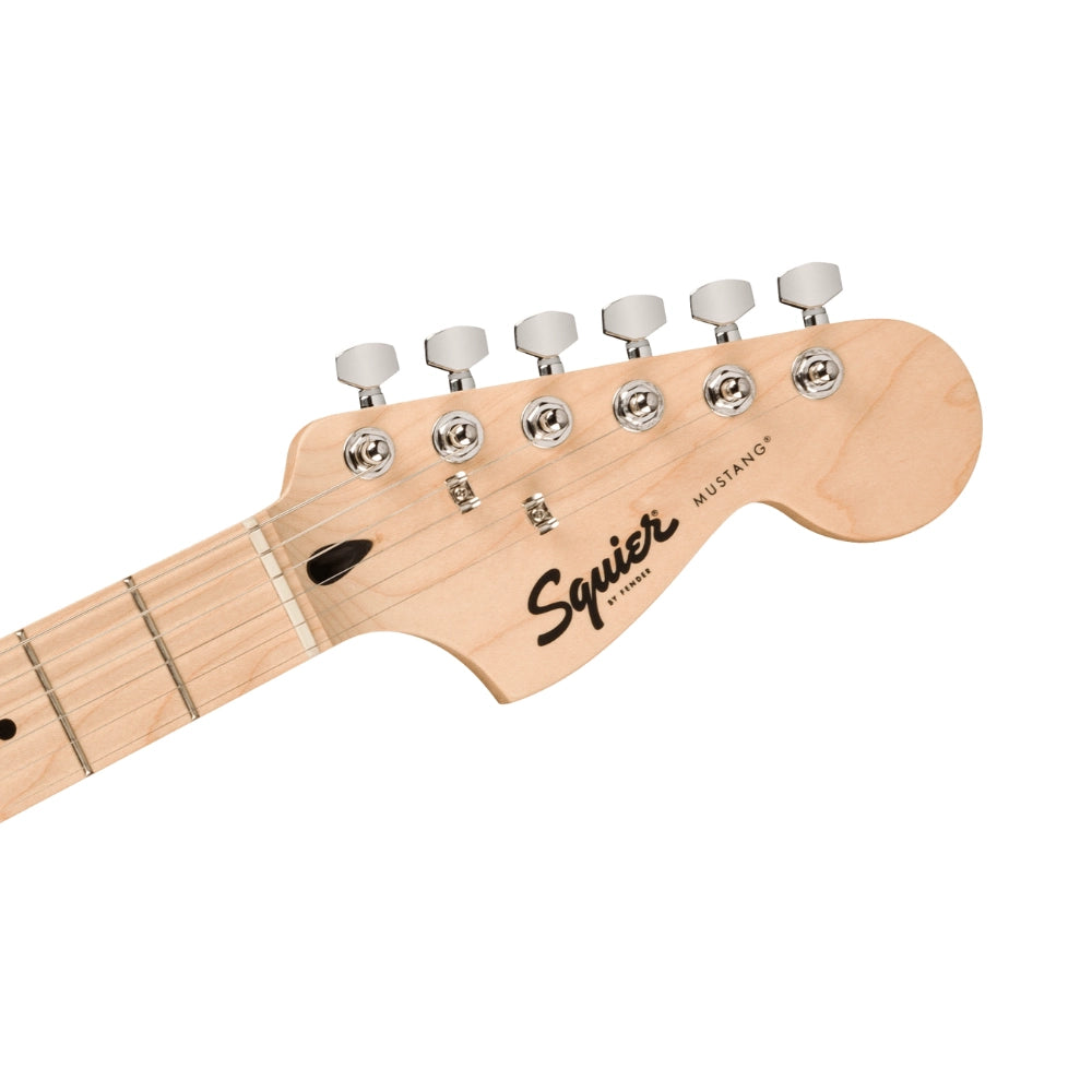 The Squier Sonic® Mustang® is ready to launch any musical adventure into warp speed, offering iconic Fender® style and inspiring tone for players at any stage. This Mustang sports a slim and inviting "C"-shaped neck profile and a thin, lightweight body for optimal playing comfort while a pair of Squier® single-coil pickups chime with crystal clarity for a wide variety of versatile tones. Further details of this model include a short 24" scale length, 6-saddle hardtail bridge for reliable intonation, sealed-gear tuning machines for smooth, accurate tuning and durable chrome-plated hardware that is sure to catch the spotlight.